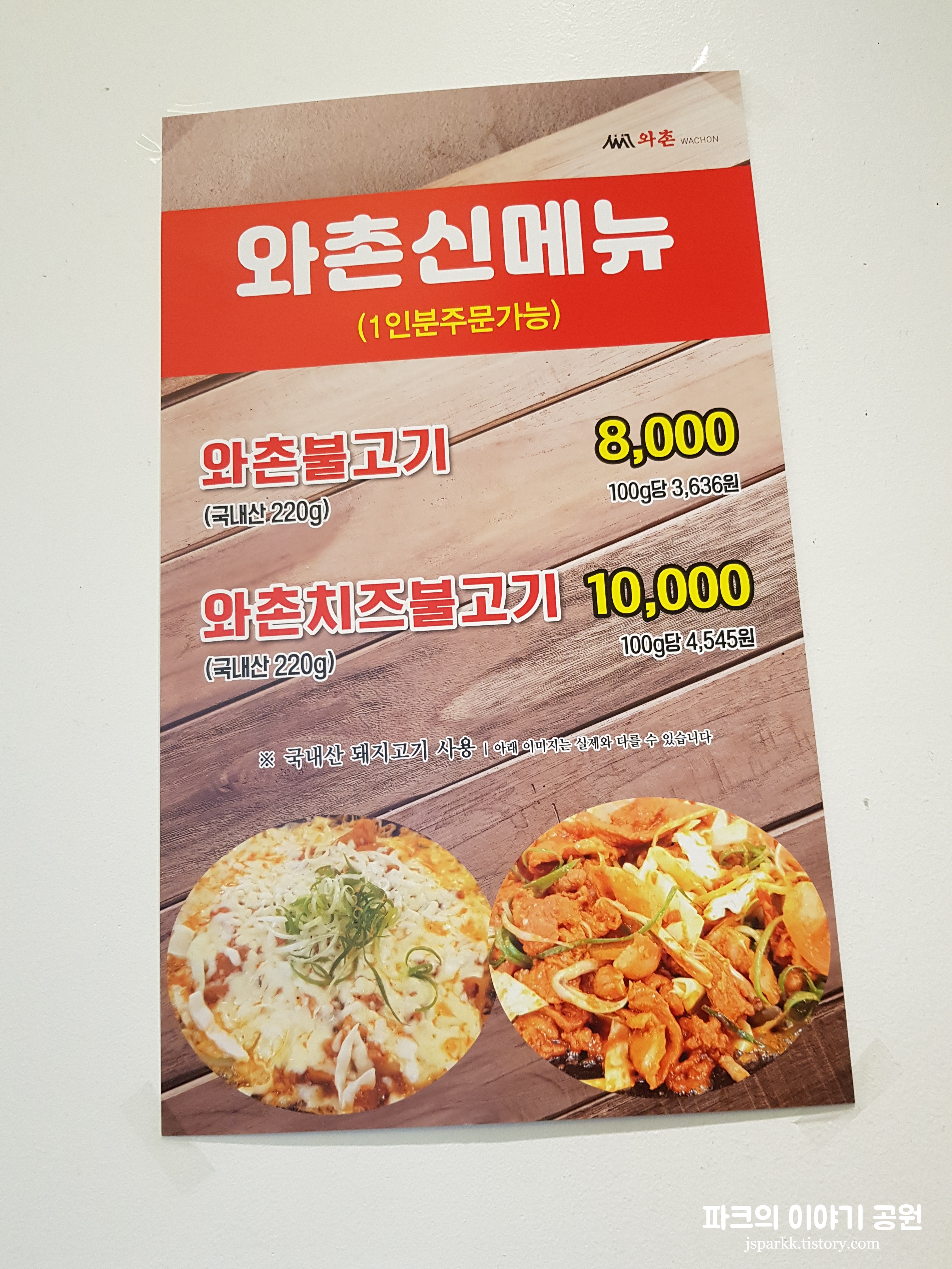 신메뉴인 와촌불고기는 1인분부터 주문이 가능하다.