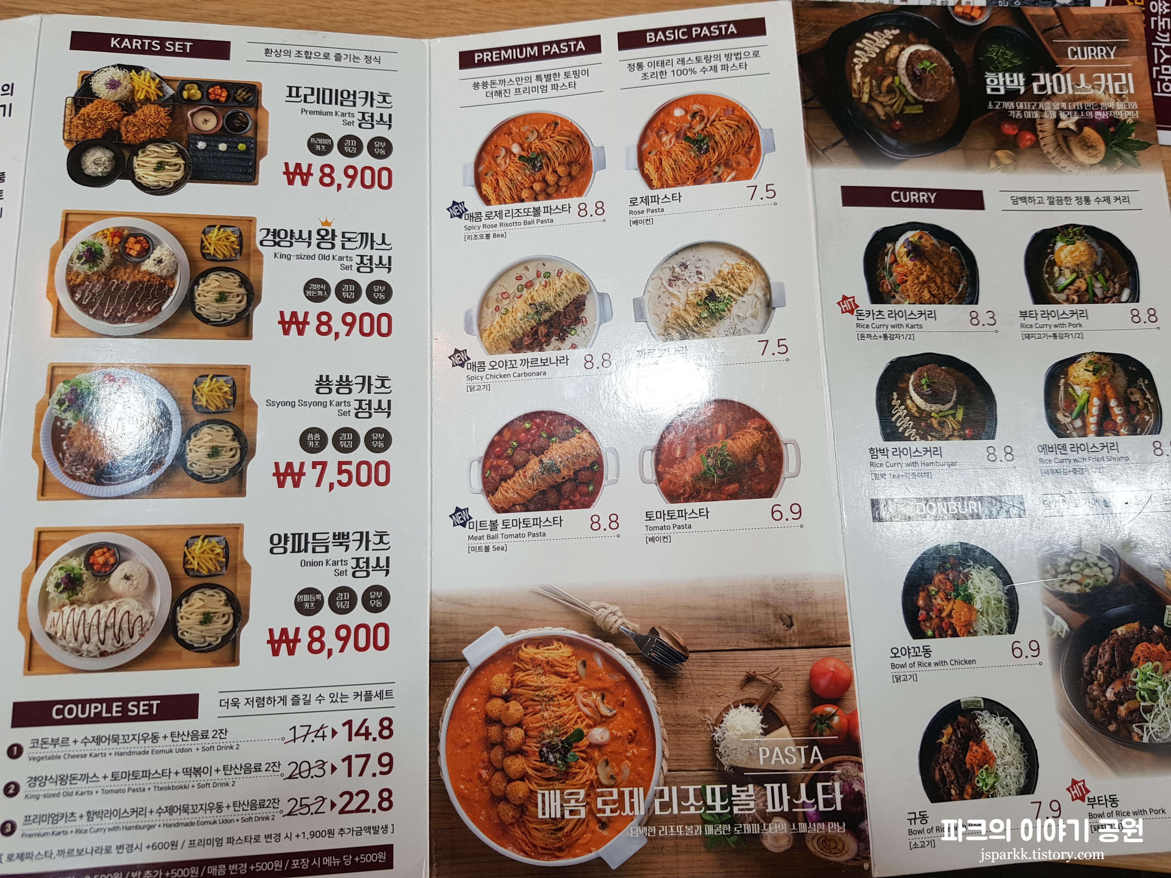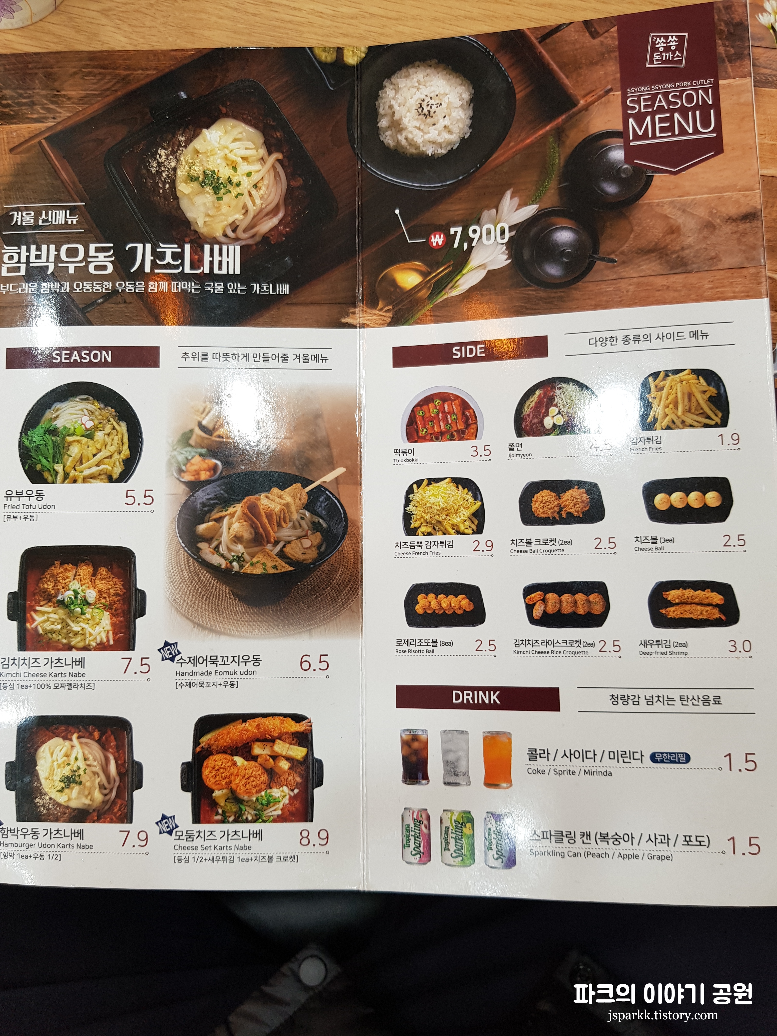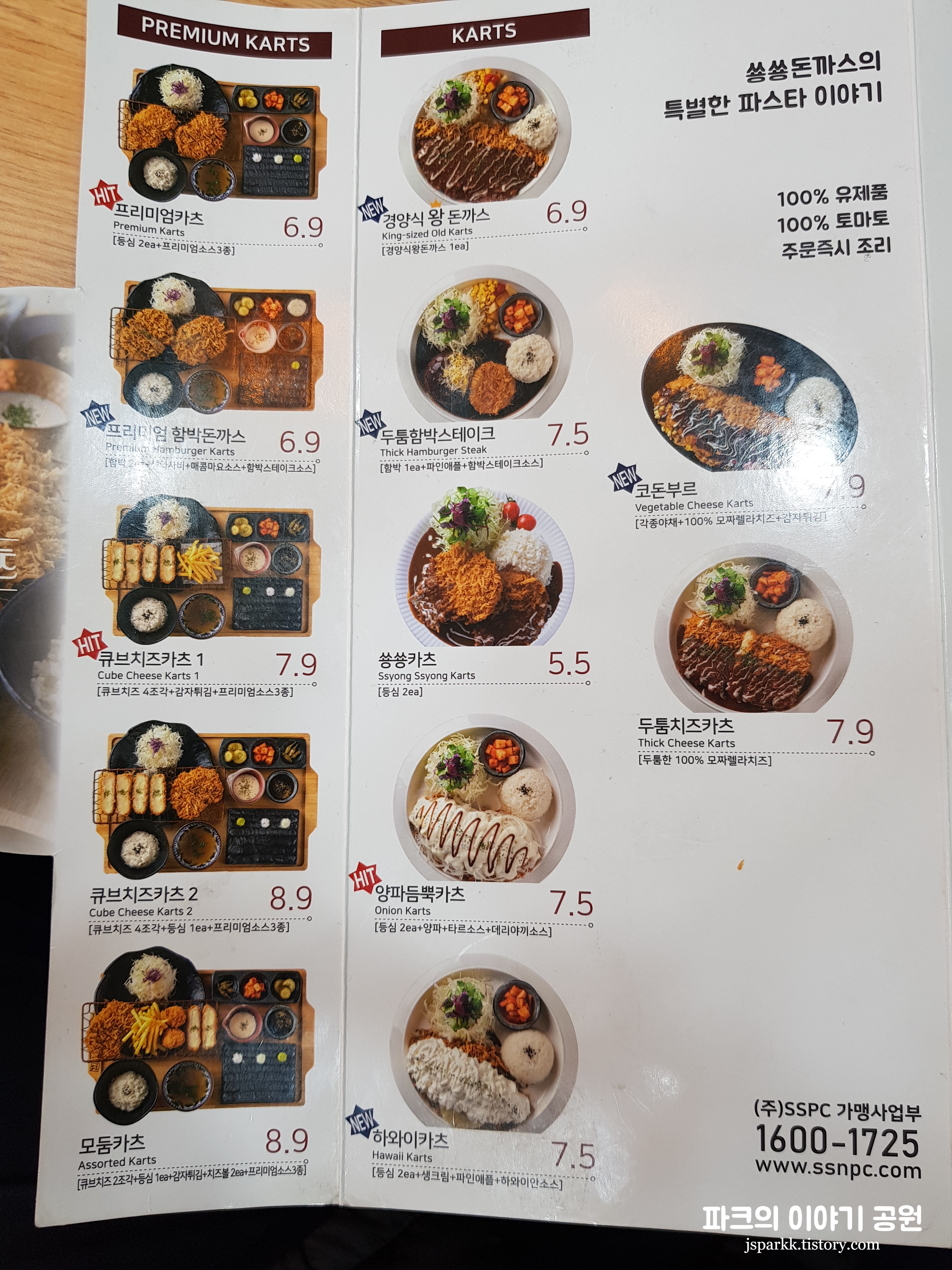 숑숑돈까스의 메뉴판이다.