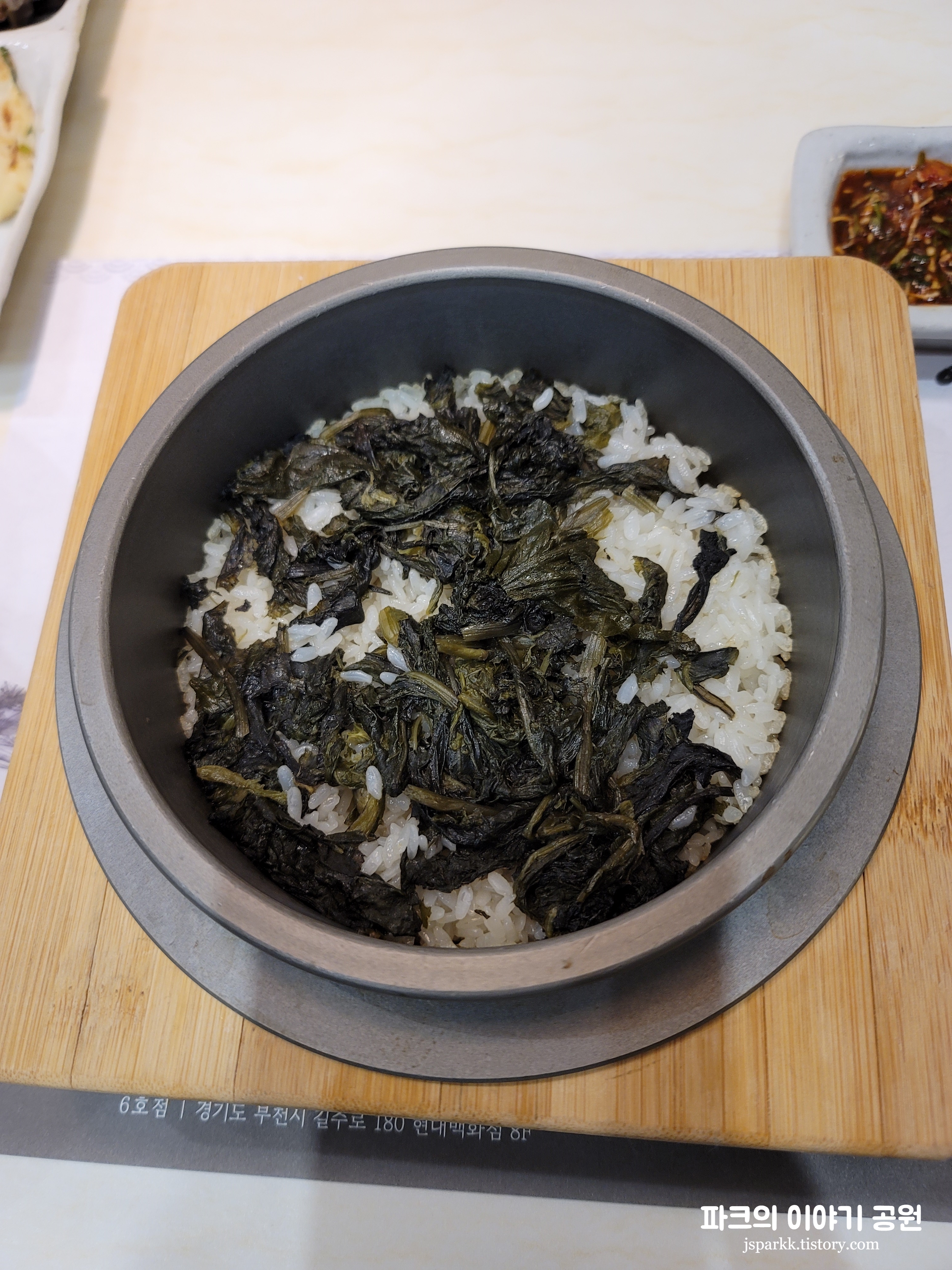 밥은 돌솥밥으로 나온다. 근데 뭔가 완벽한 정통 돌솥밥 느낌은 아니고 돌솥과 플라스틱 사이의 중간 느낌이었다.
