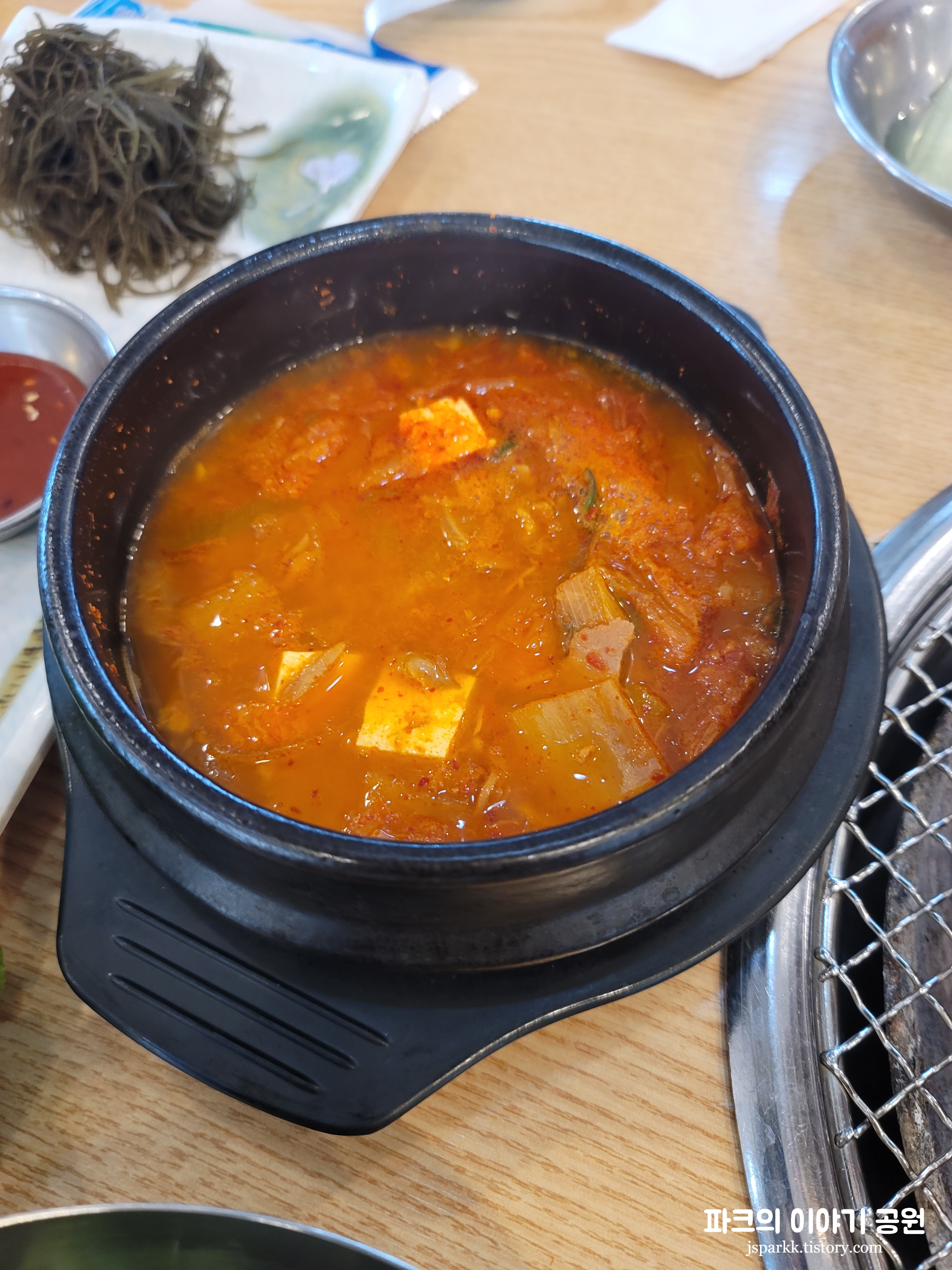 그래도 김치찌개가 꼭 먹고 싶어 시켜먹어 보았다. 하지만... 생각보다 별로였다. 커큐민 흑돼지에서는 그냥 멜젓만 먹는 것을 추천한다.