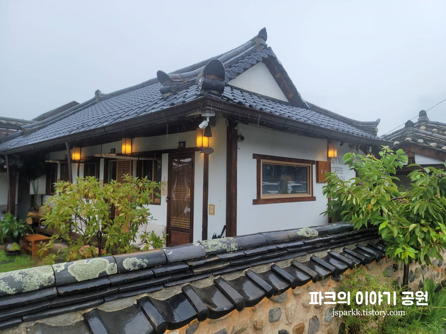 봄날 카페는 위 사진과 같이 한옥으로 된 카페이다. 마침 비가 오는 날이라 더욱 더 운치가 있었다.