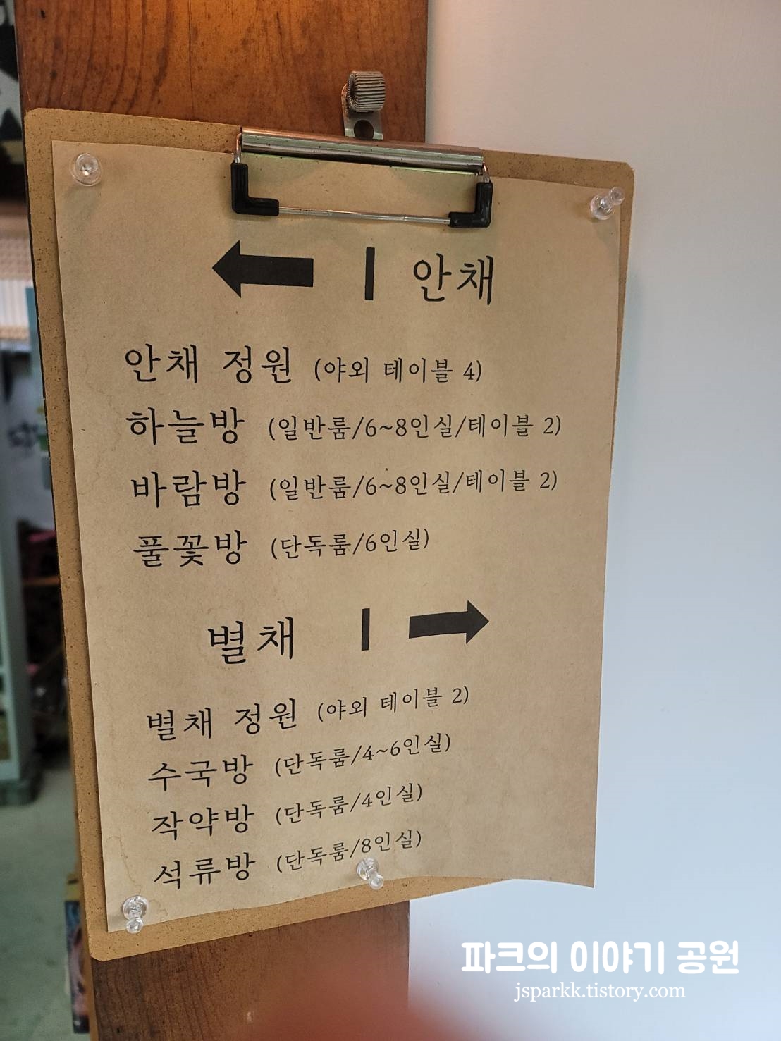 카페 봄날의 방은 8개가 있다. 처음 카운터에 가면 방이 남아 있는지 알려주고 방이 있으면 배정을 해준다. 방을 이용하려면 최소 2만원 이상 결제를 해야 하며, 이용 시간은 1시간이다.