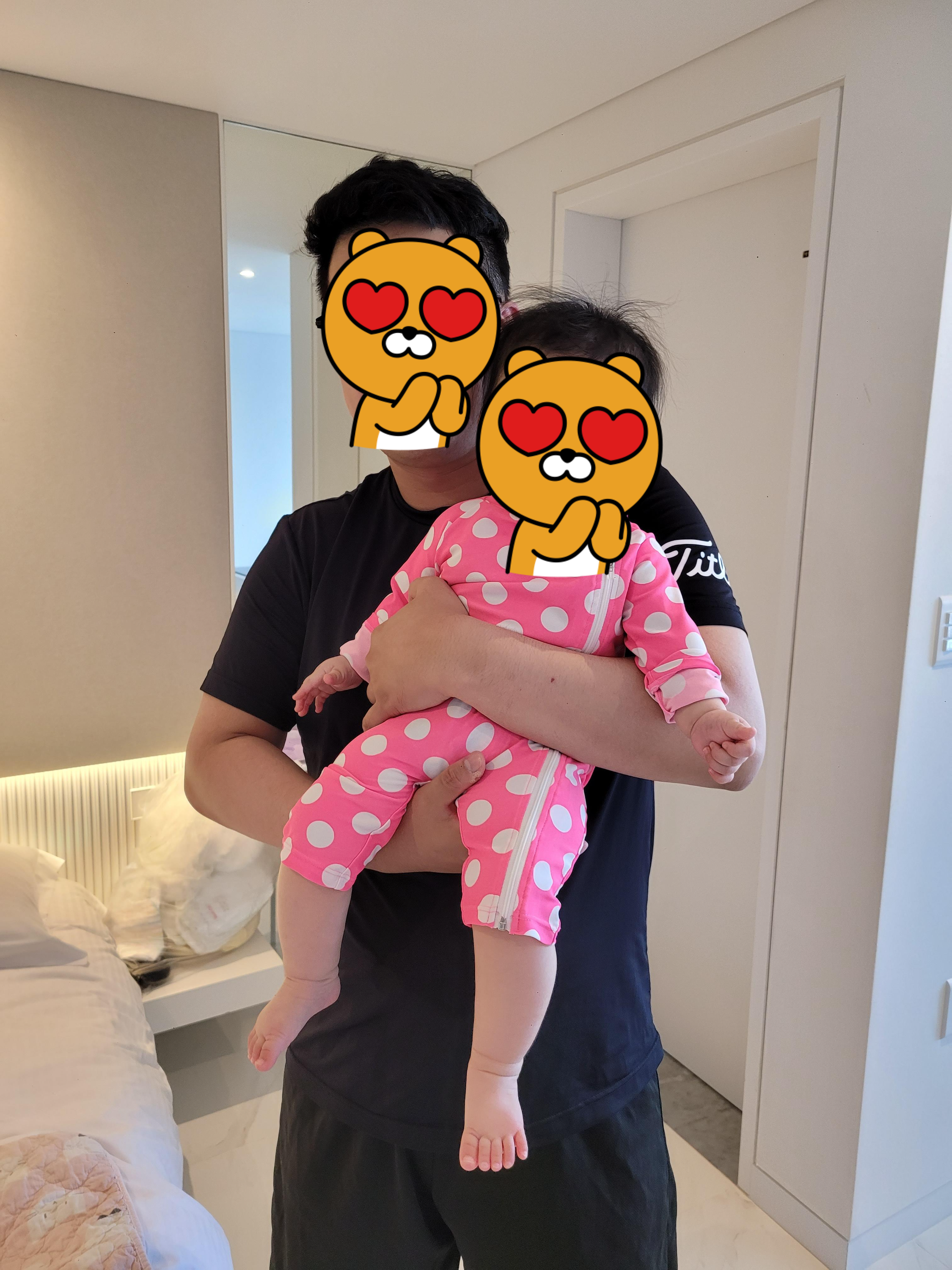 아기 수영복을 입히고(당근마켓 감사합니다)