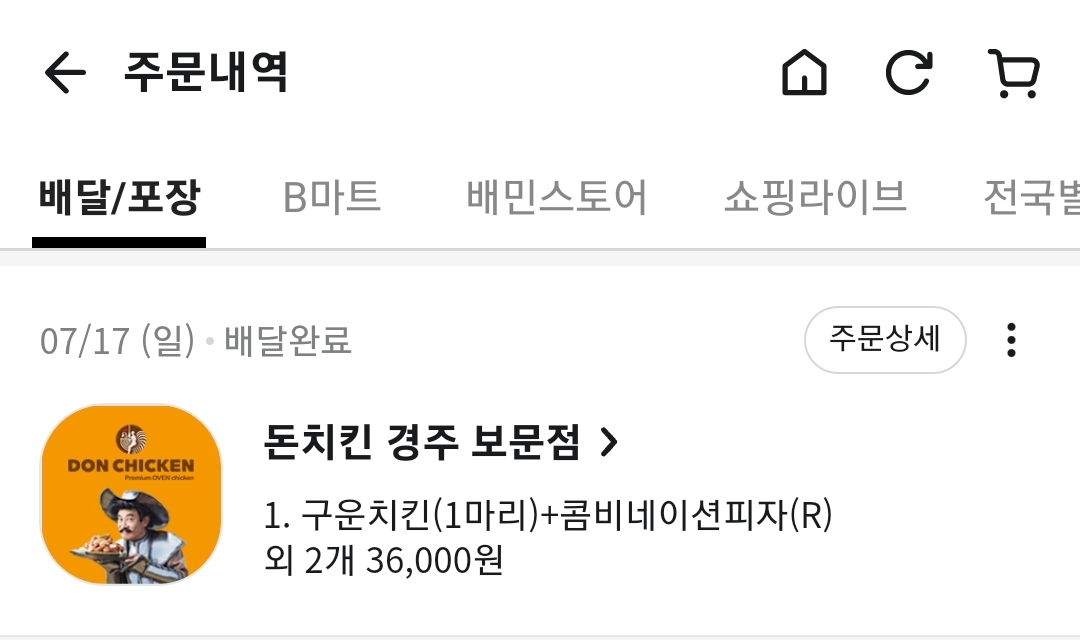 치킨과 콤비네이션을 같이 먹을 수 있는 돈치킨을 시켰다.