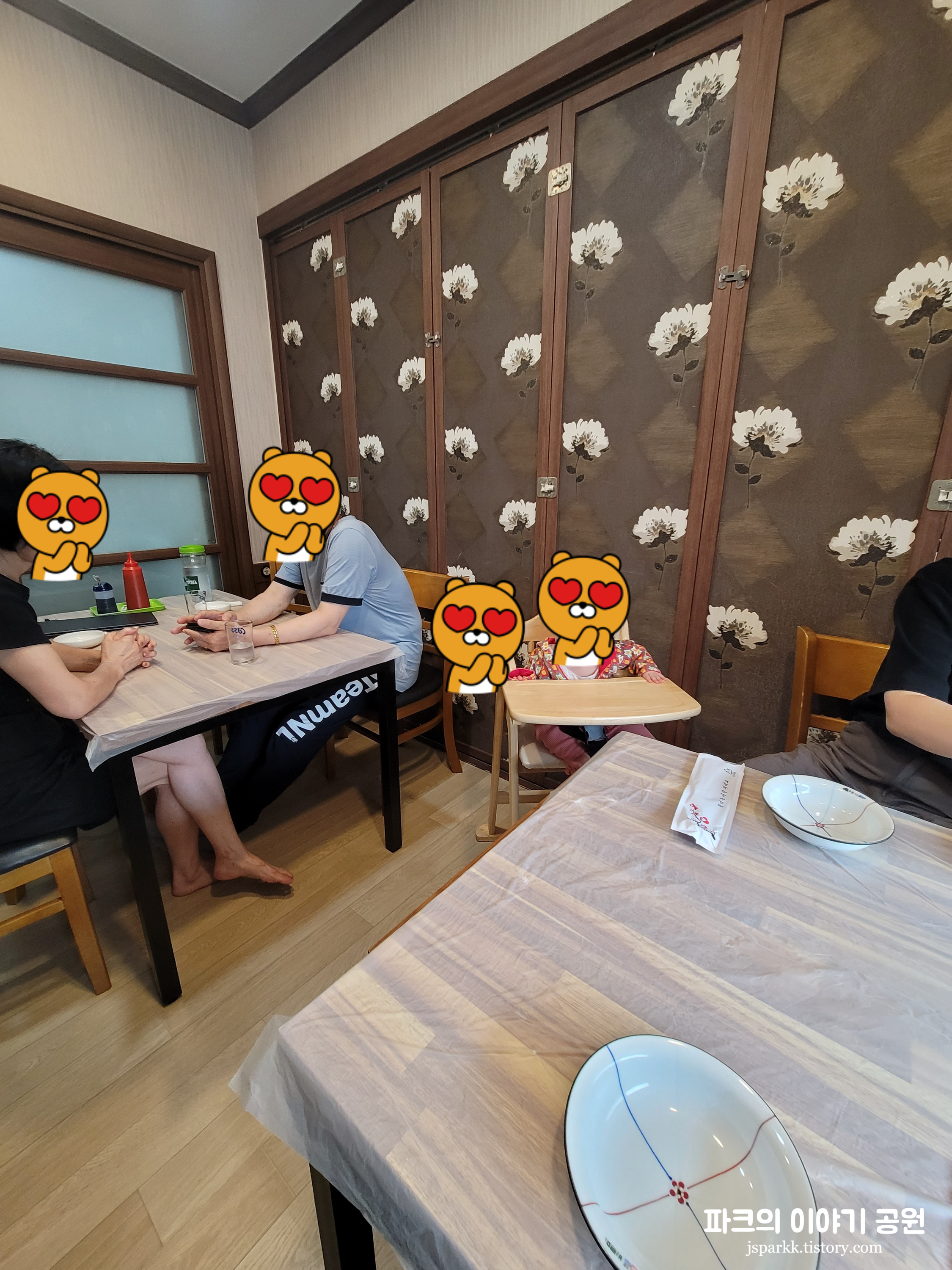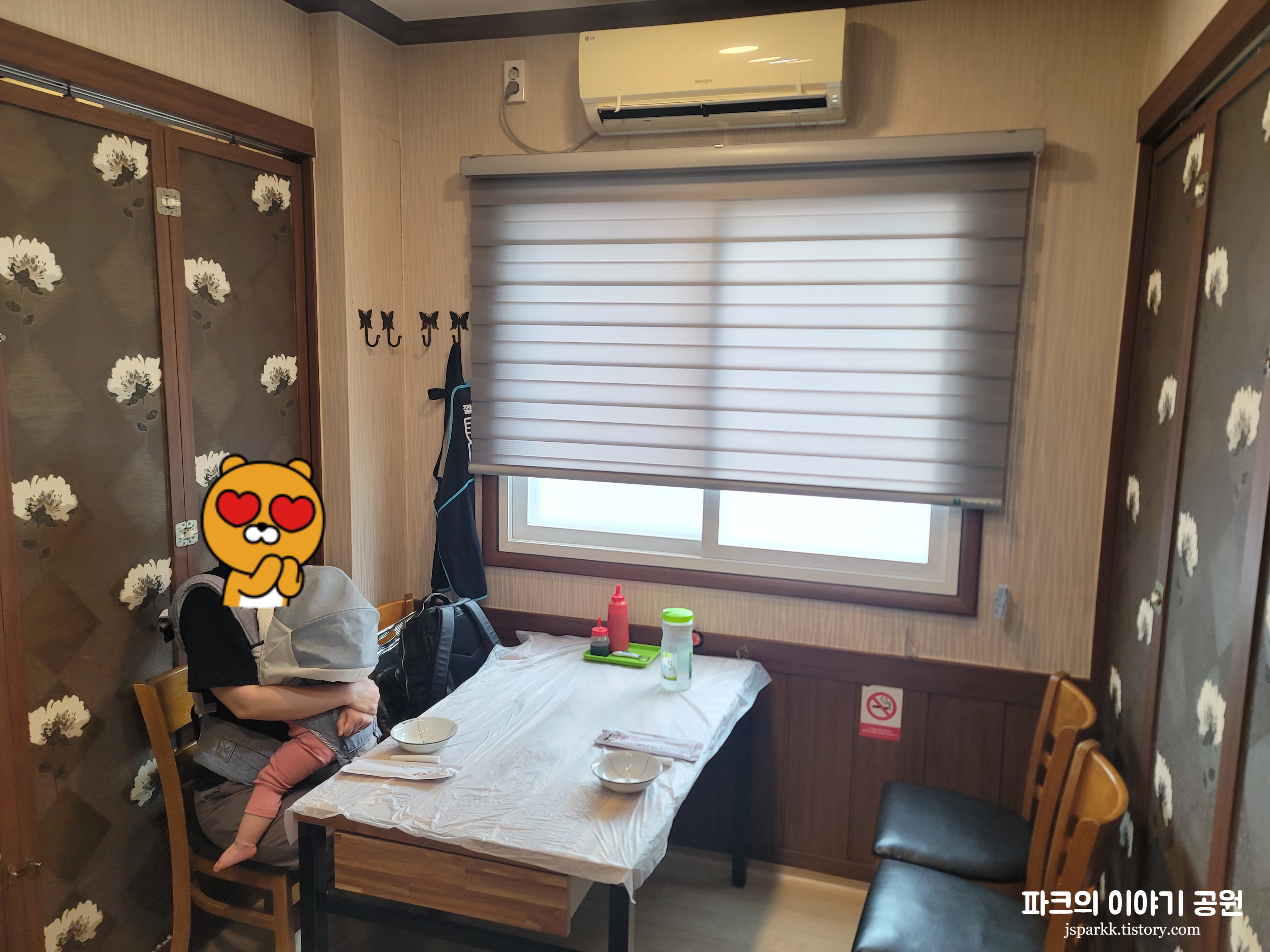단독룸이 아니라 한 방에 테이블이 2개씩 있는 룸이었다. 뭔가 속은 것 같은 느낌이 들었지만, 그래도 사람들이 바글바글 한 것보다는 낫다는 생각이 들어 넘어가기로 했다. 다행히 옆의 손님들이 우리 애기를 계속 귀엽고 사랑스럽게 봐주셔서 애기가 가끔 시끄럽게 굴어도 그 나이 때는 다 그렇다면서 너그럽게 넘어가 주셨다. 너무 감사하다.