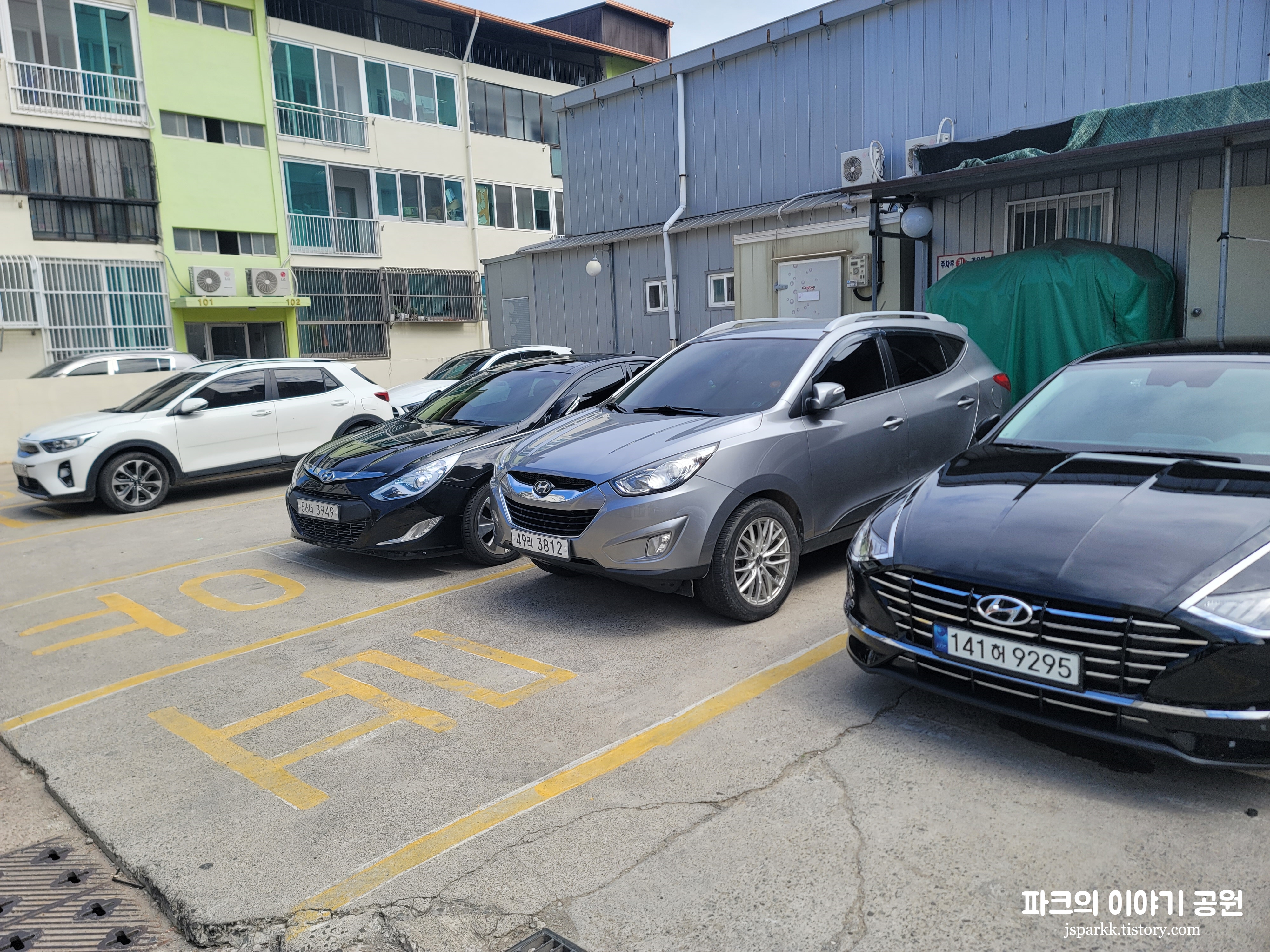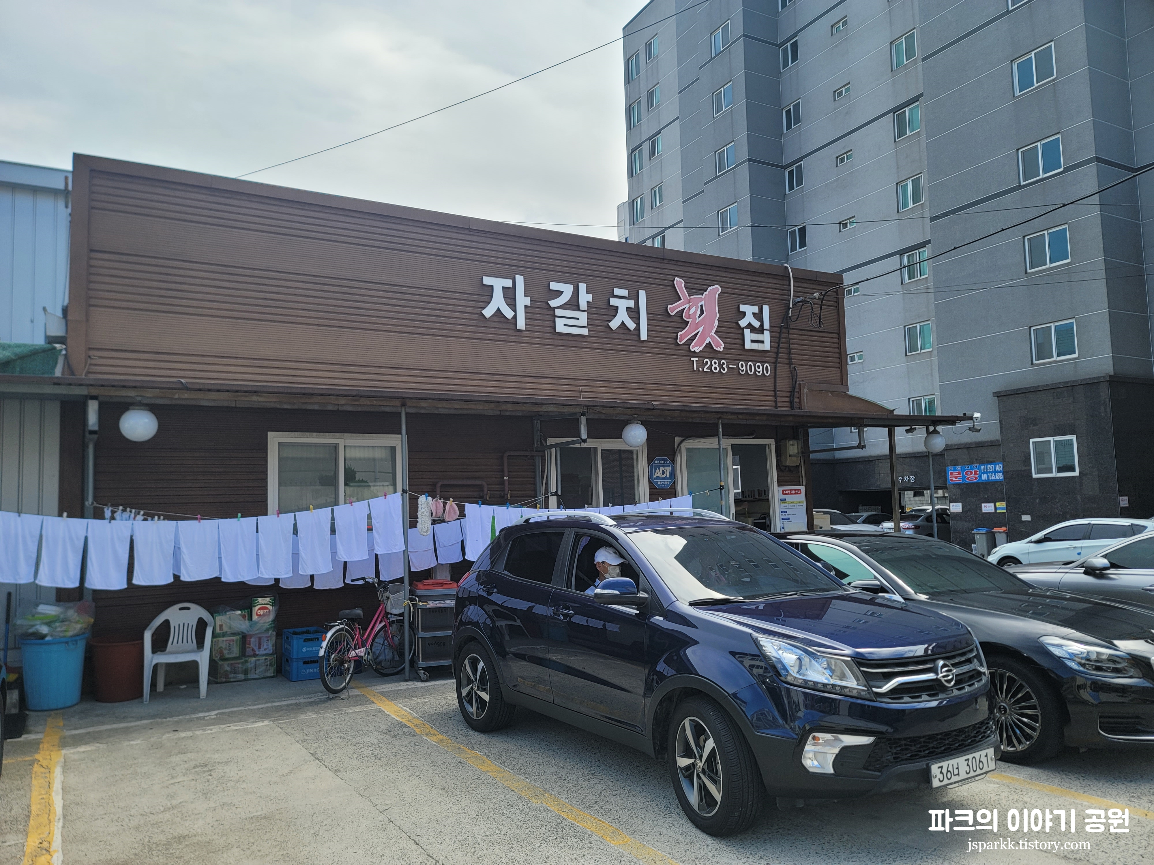 포항 자갈치횟집은 주택가 사이에 위치해 있다. 식당 앞에 주차공간이 마련되어 있으며, 꽉 차면 주변 주택가에 차를 댈 수 있다.