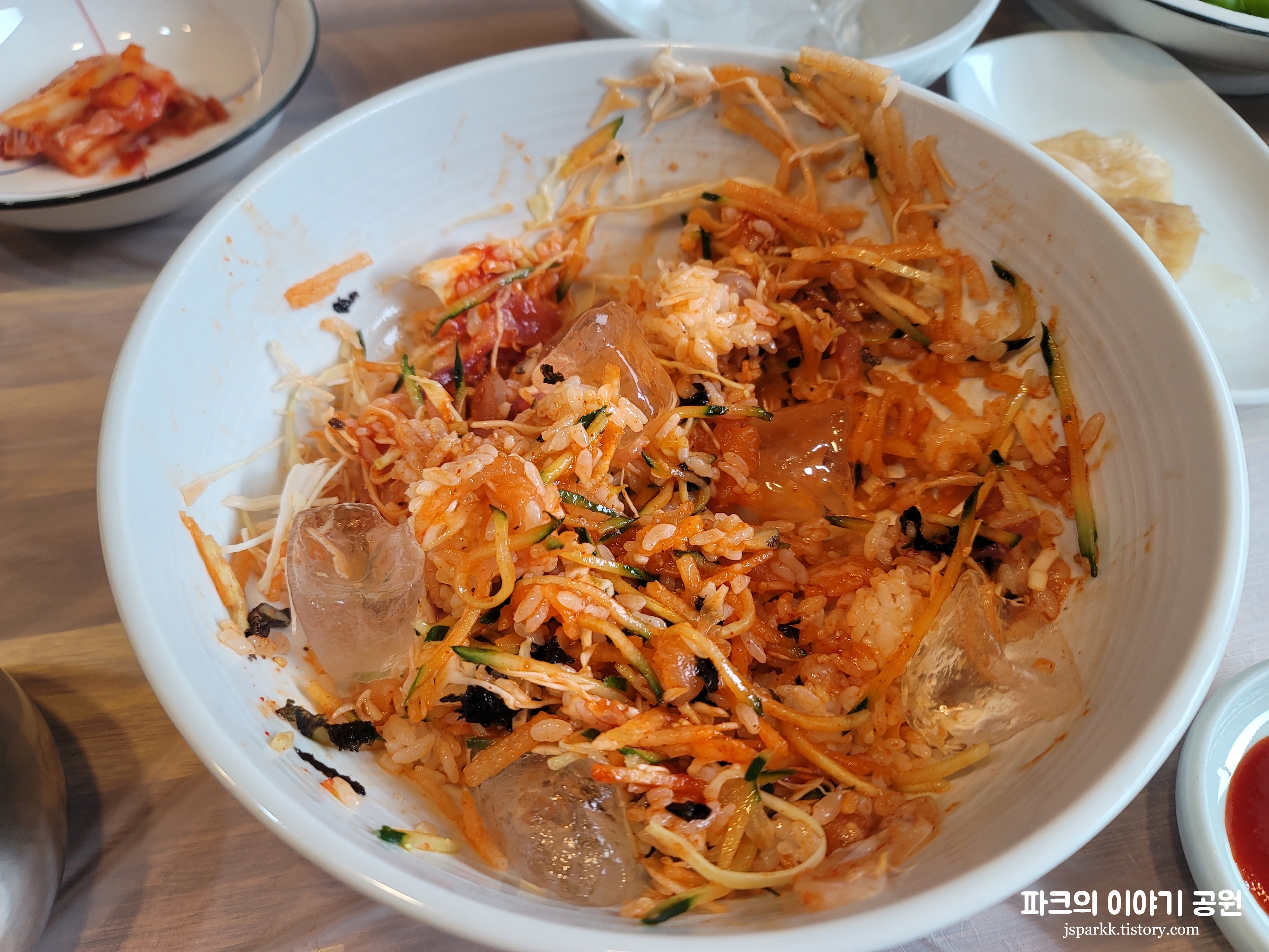정식을 어느 정도 먹고 나자 물회가 나왔다. 개인적으로는 물회를 그렇게 좋아하지 않아 객관적인 평가를 할 수 없으므로 물회에 대한 평가는 넘어가겠다. 와이프는 맛있다고 했다.