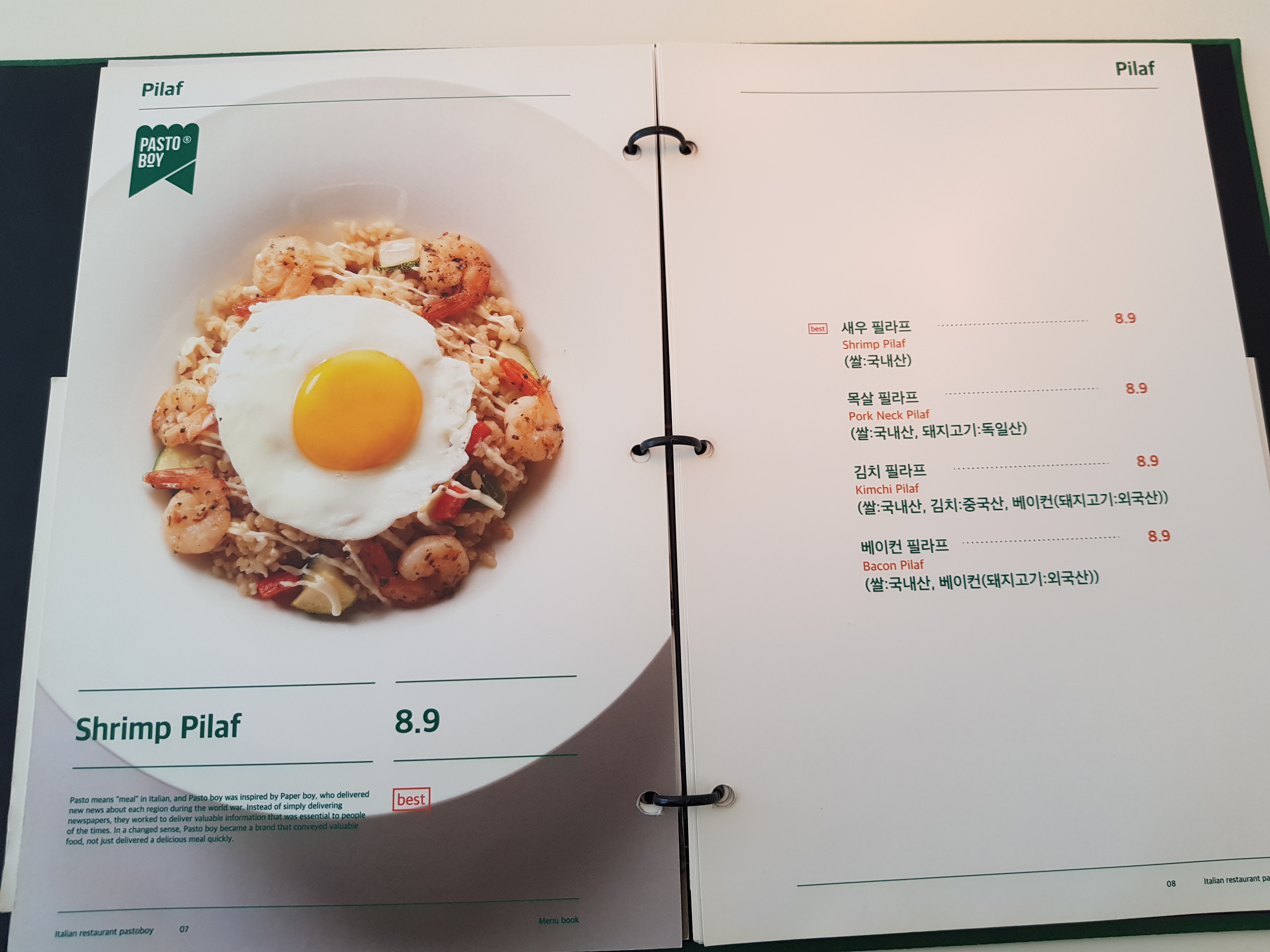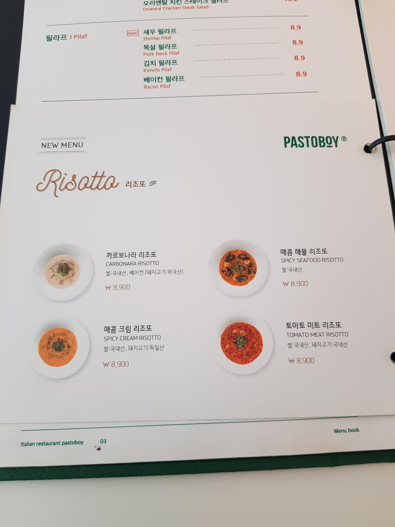 '목살 필라프'와 '그릴드 치킨 크림 파스타'를 주문했다.