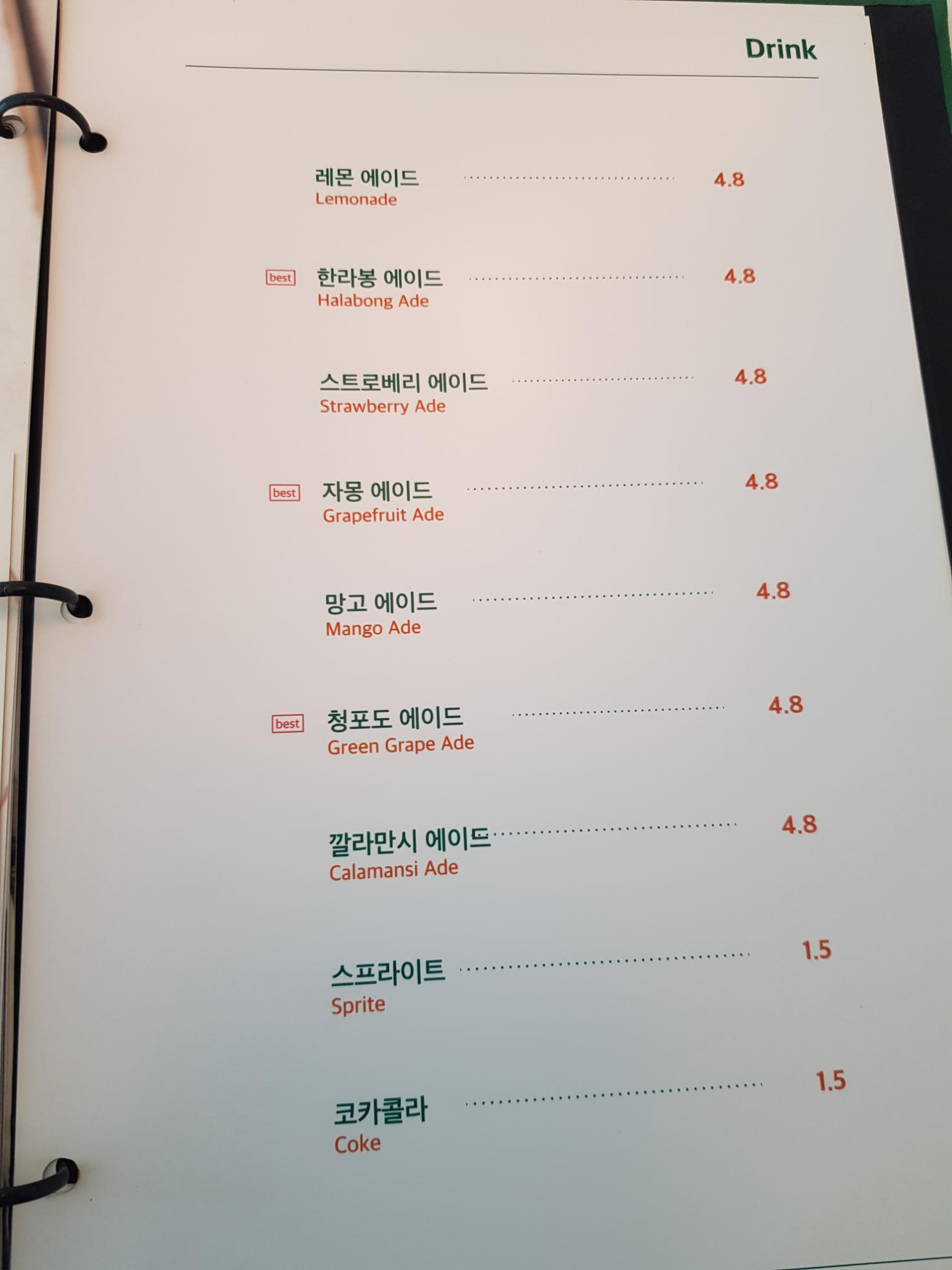 메뉴판도 매장 내부와 마찬가지로