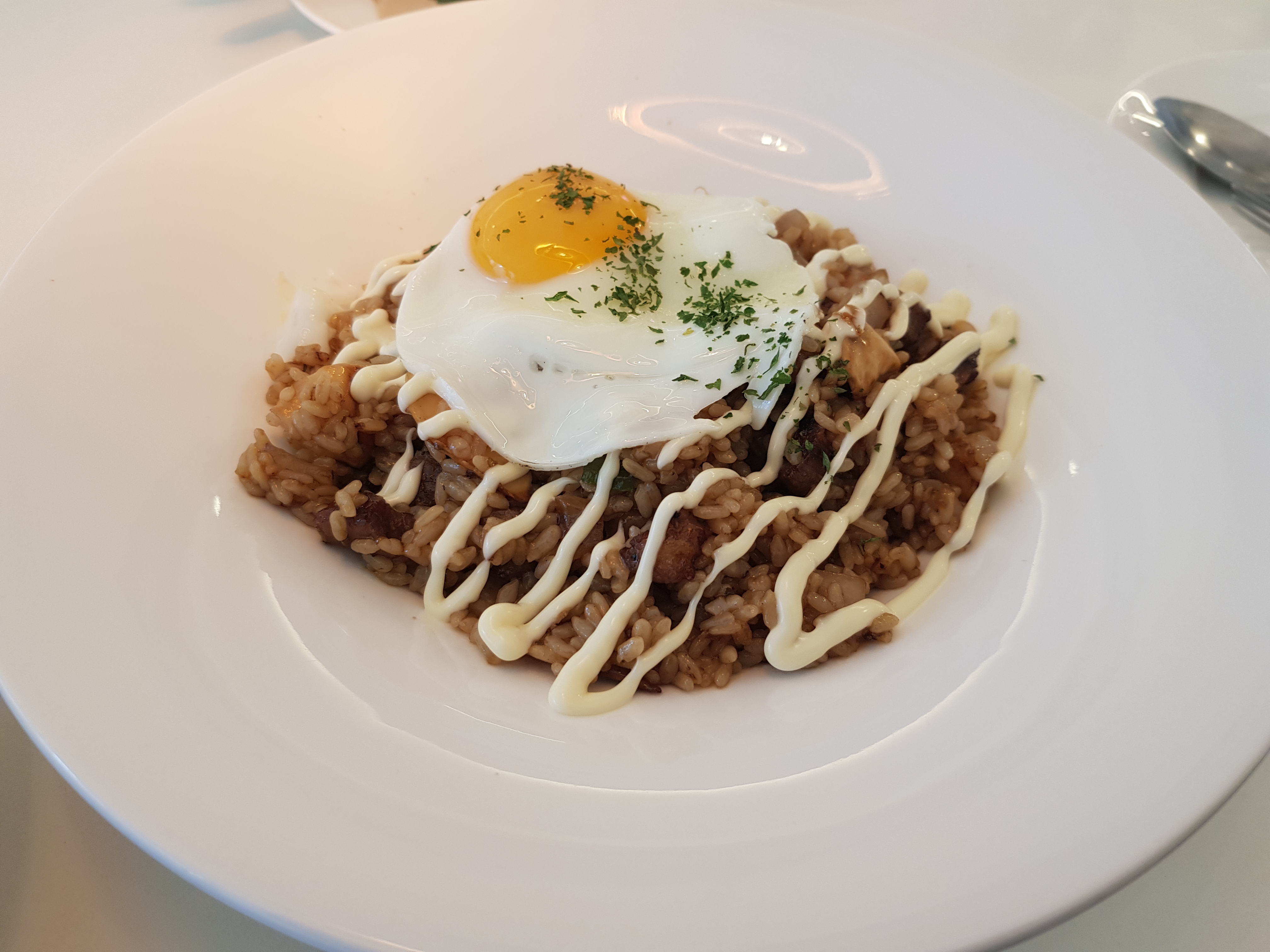 목살 볶음밥에 마요네즈를 뿌린 맛이었다.