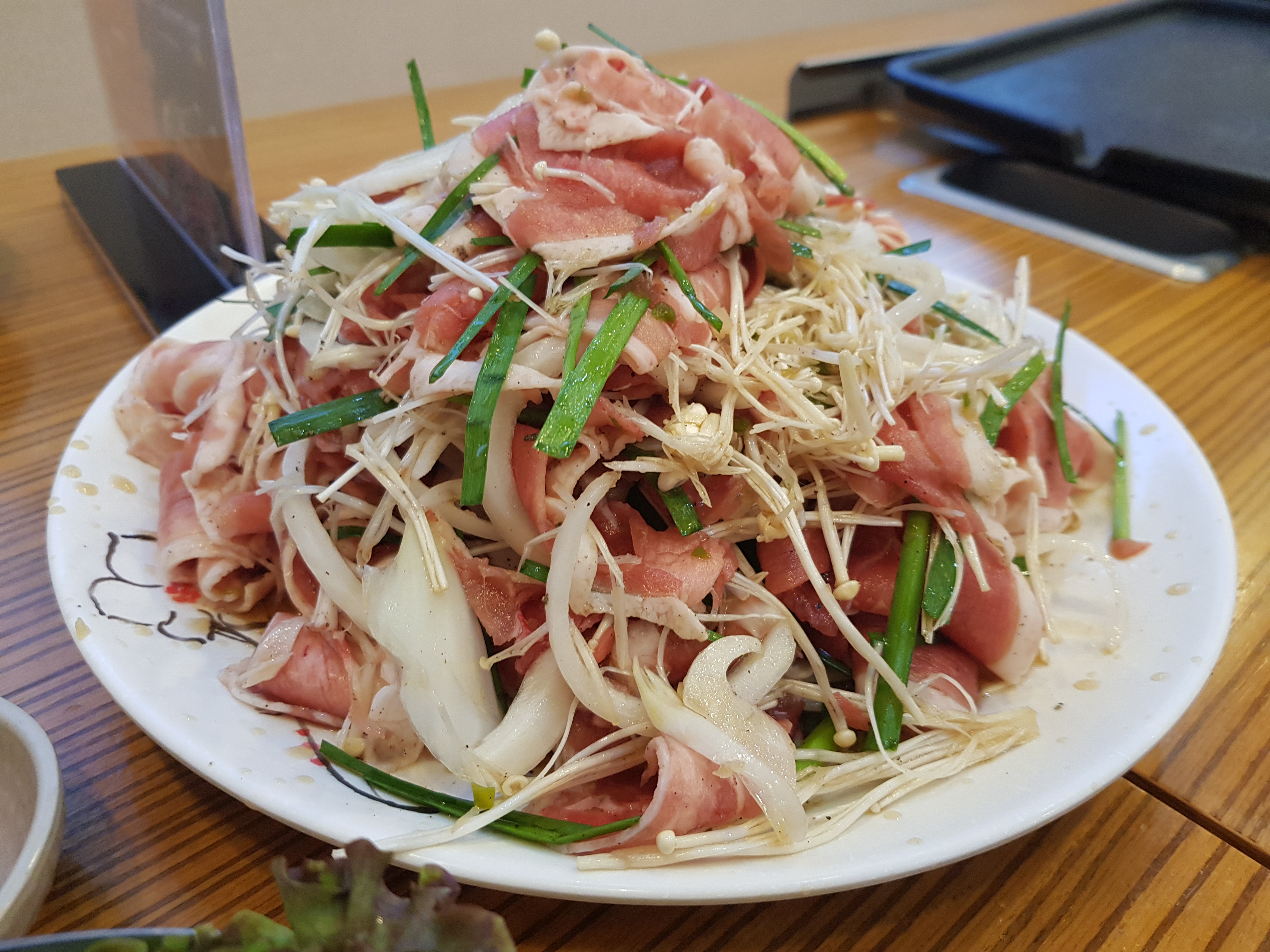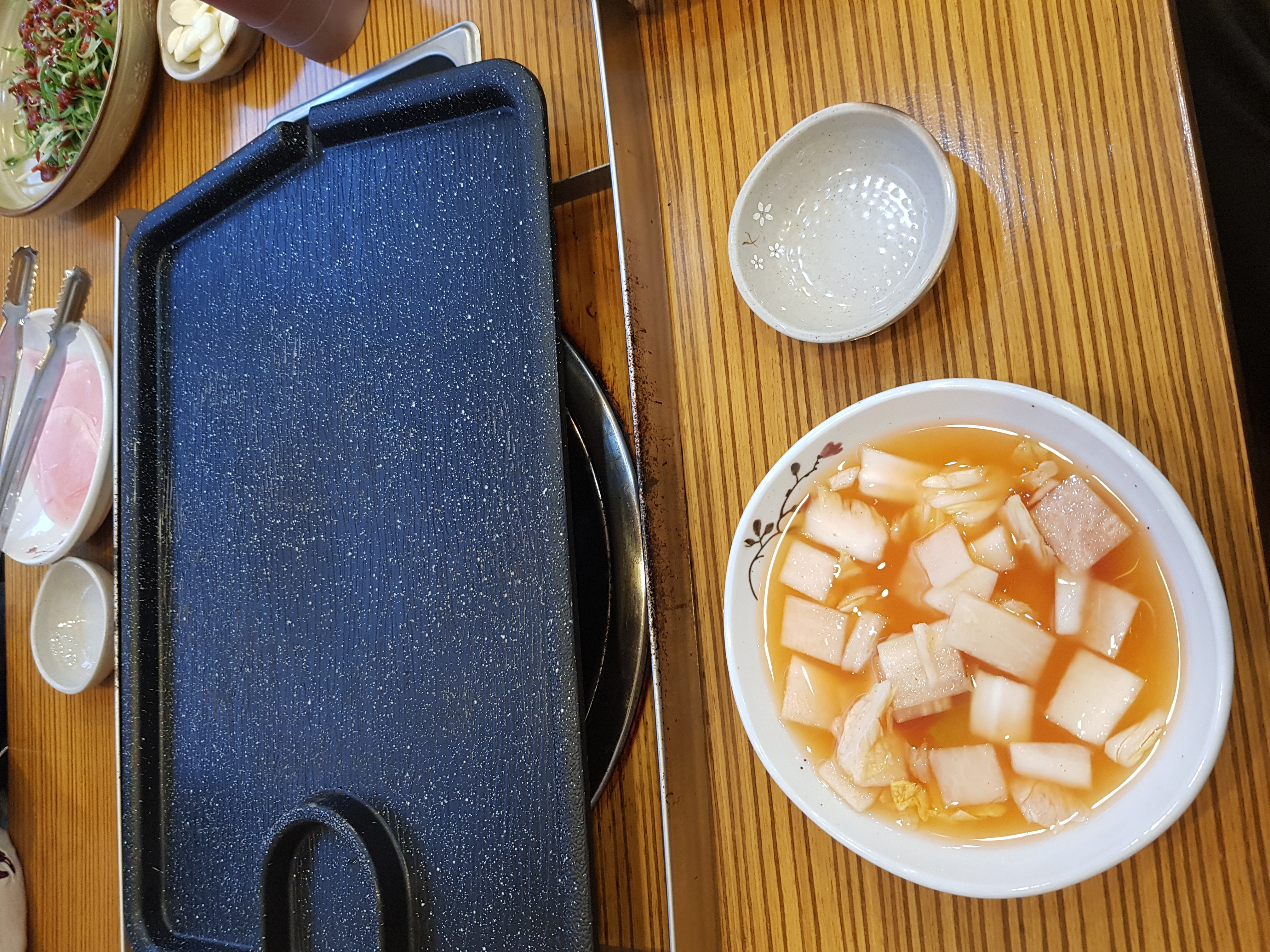 약간 시큼한 느낌이 있는 백세불고기와 짭짤한 수제비의 궁합이 일품이었다.