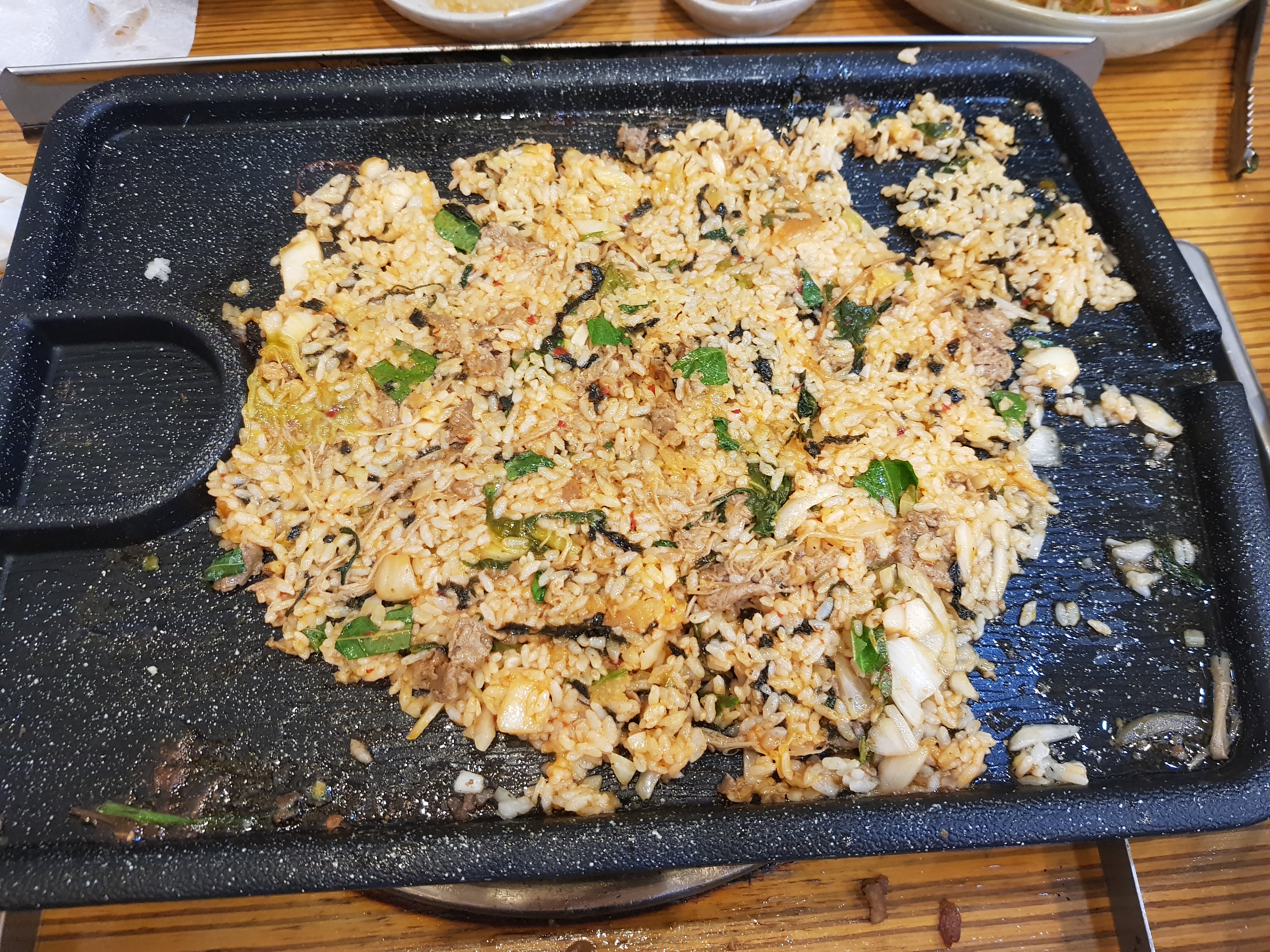 2명이다 中자를 먹었는데, 고기가 조금 남아 같이 볶았다.