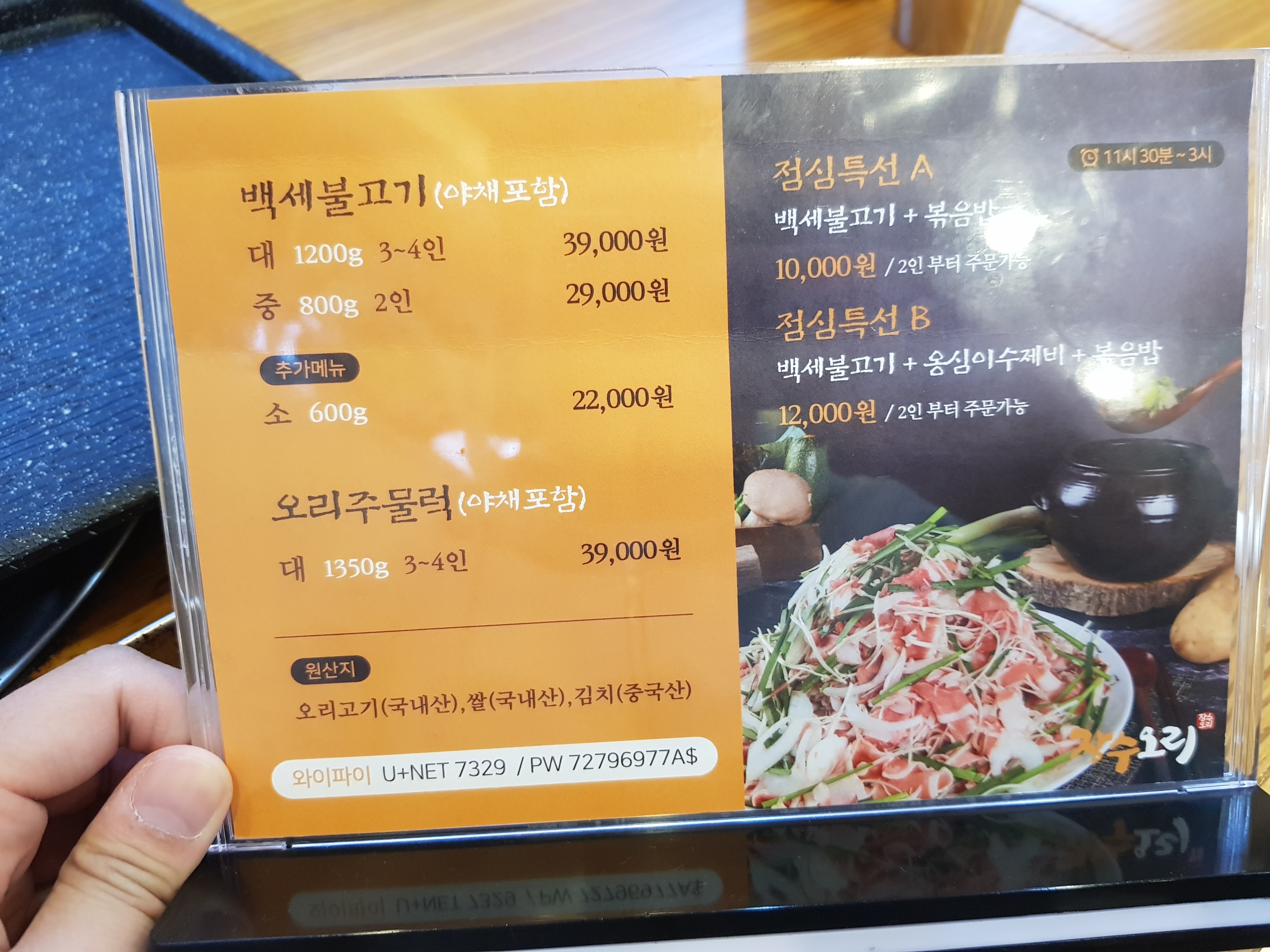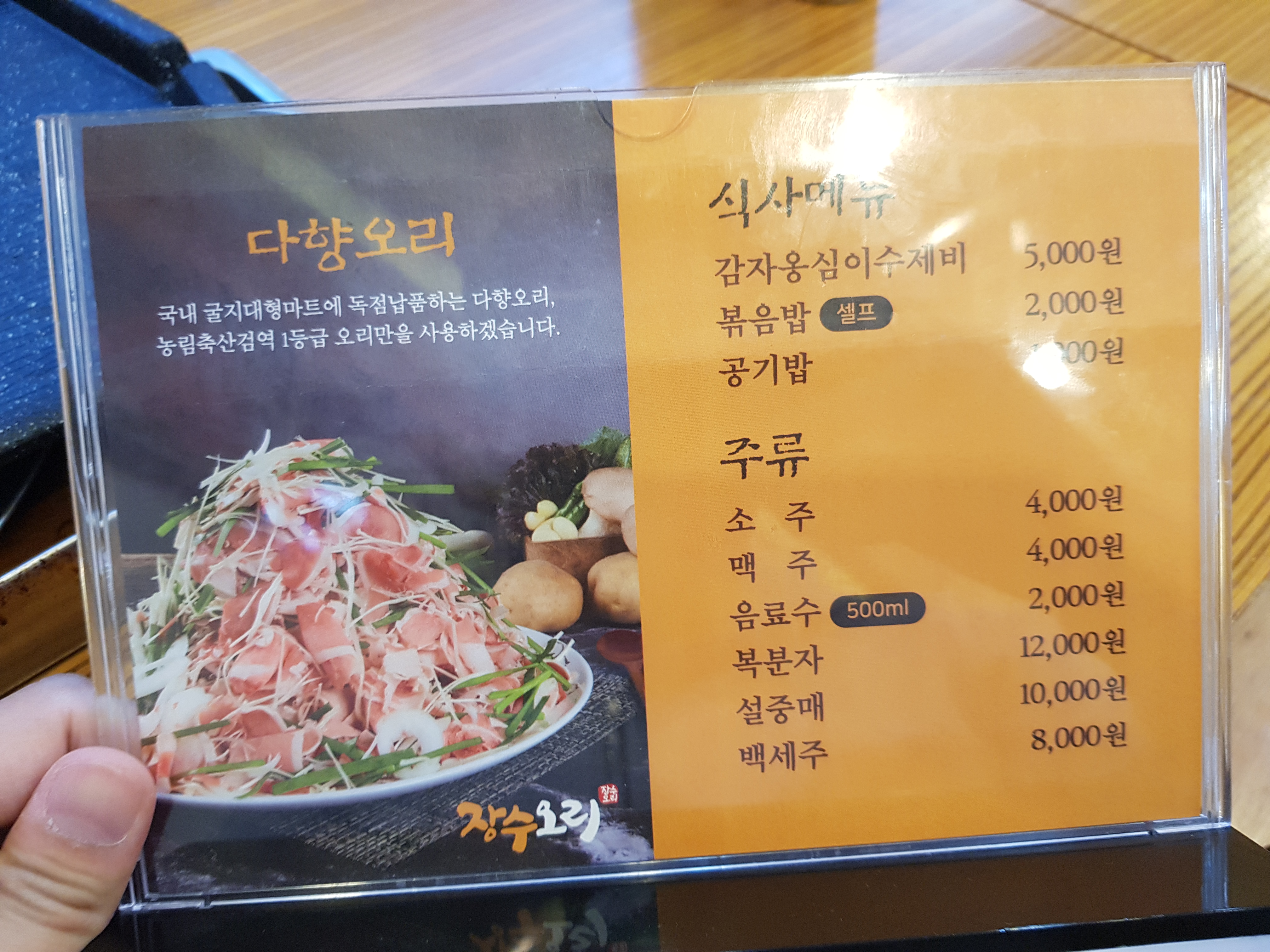 '백세불고기'라는 오리불고기를 메인메뉴로 팔고 있는 '장수오리'라는 식당이었다.