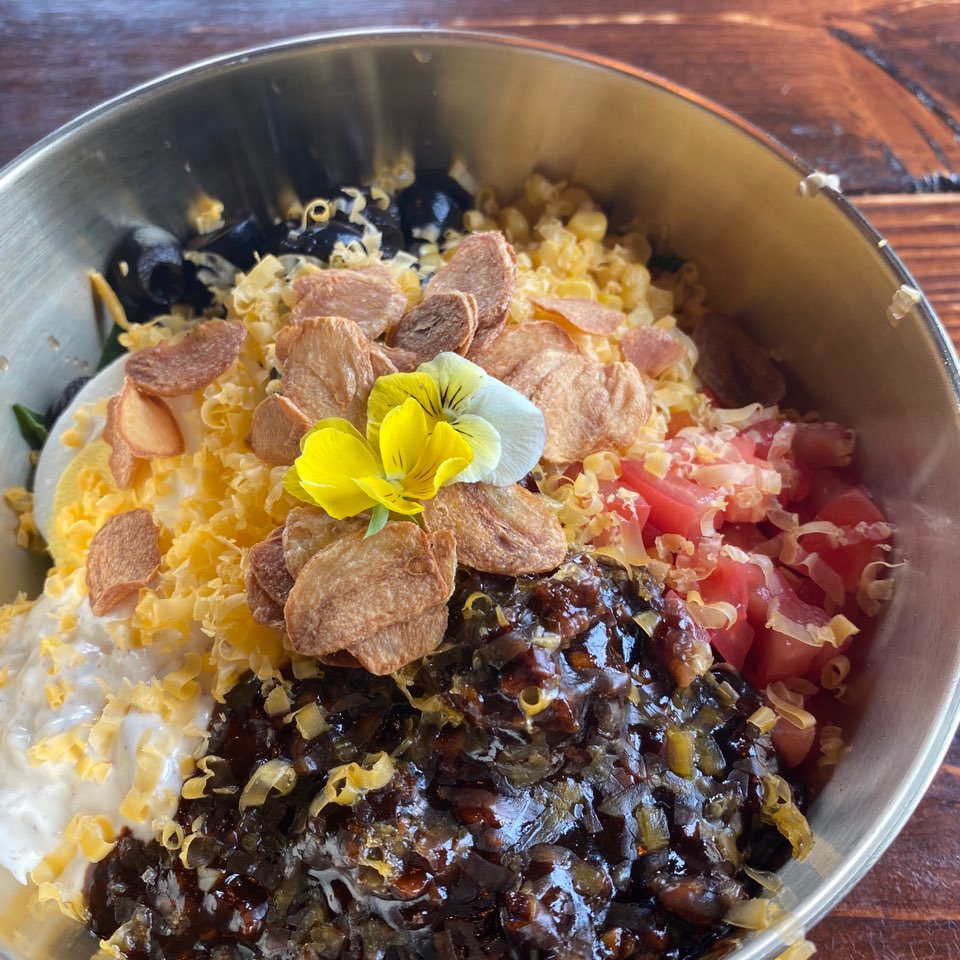 남해 흑마늘 소스로 구운 소고기패티와 베이컨향 가득한 스페셜 샐러드이다.